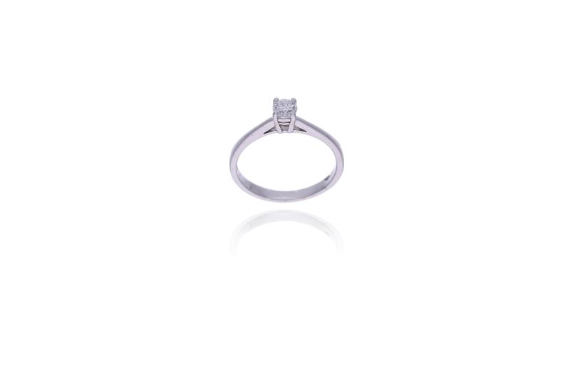 Anello con diamante, realizzato in oro bianco 750, diamante taglio brillante ct 0,25 circa, colore H-J, purezza VS-SI, misura 12, difetti