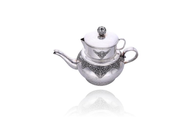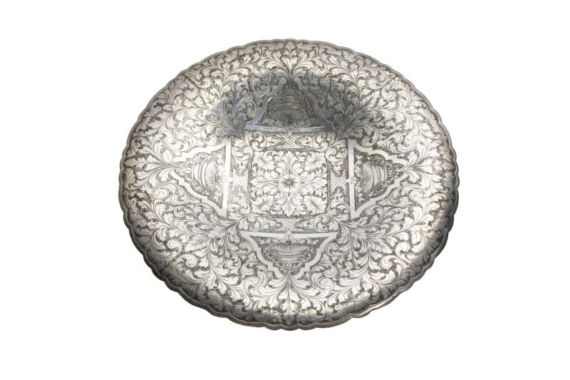 Centro realizzato in argento 800, lavorazione ad incisione, dimensioni 29 x 5,5 cm, difetti