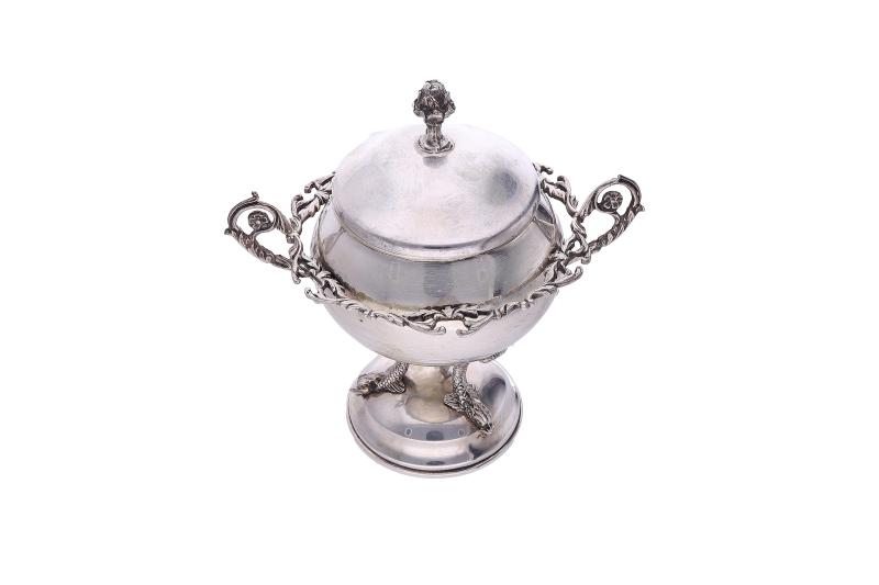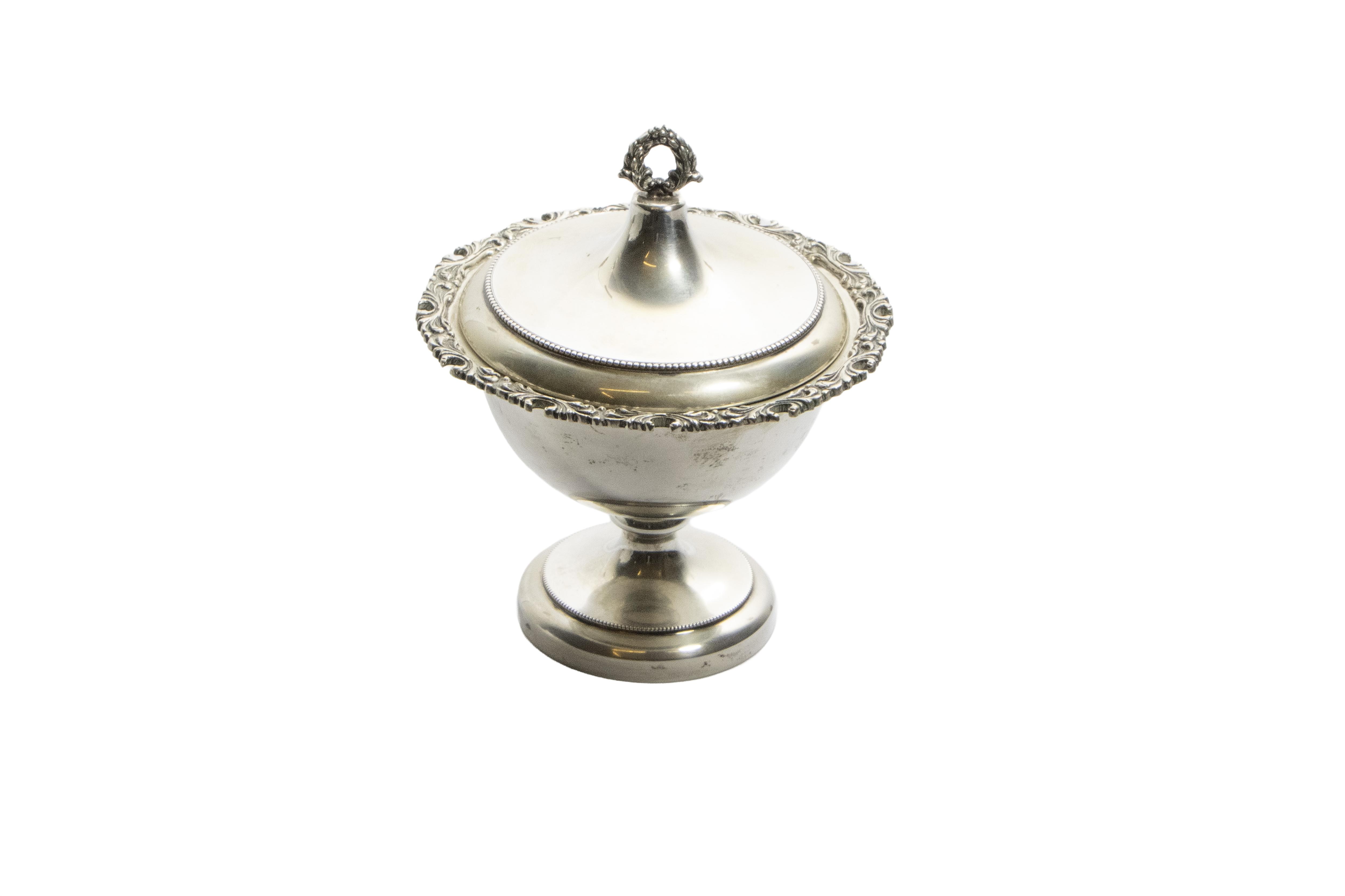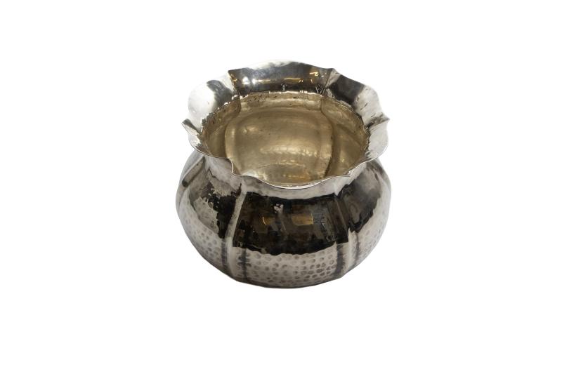Greggio, piccolo centro realizzato in argento 800, martellato, dimensioni 11 x 13,5 cm, difetti