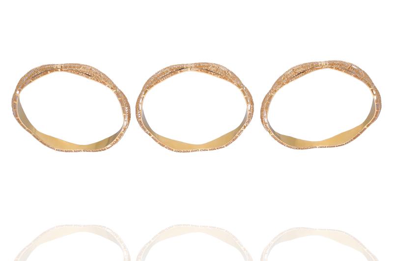 Tre bracciali realizzati in oro miglior titolo, diametro 6,7 cm, imperfezioni