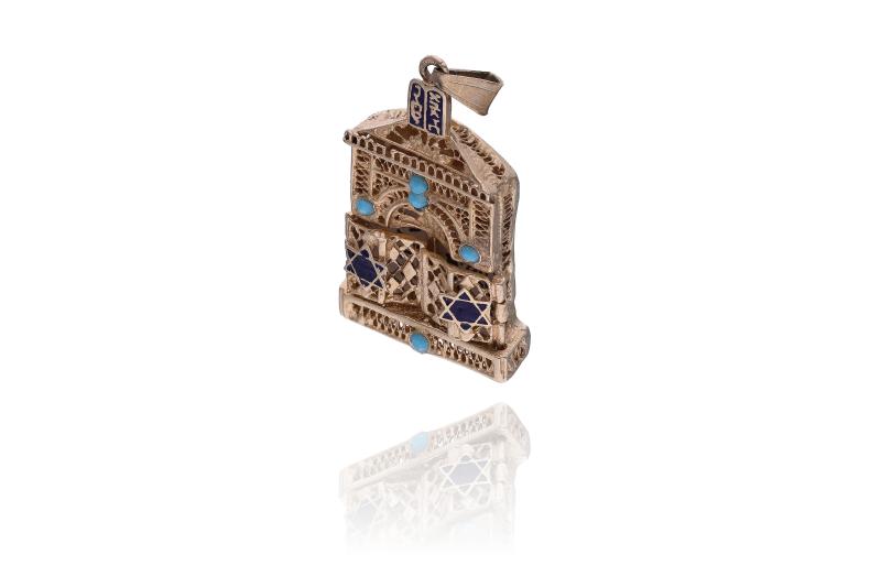 Ciondolo con pietre, realizzato in oro 585, pietre, smalti, difetti