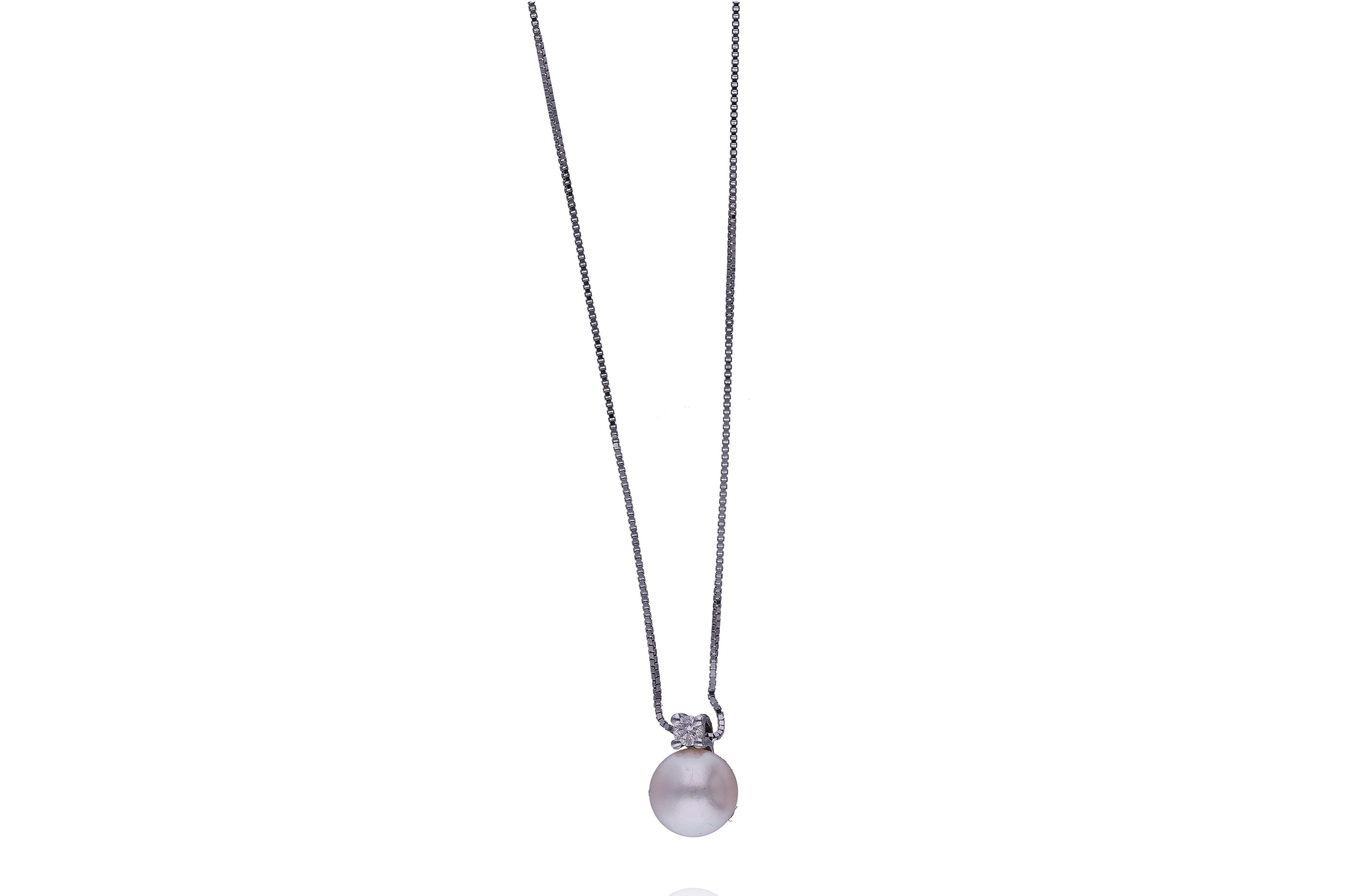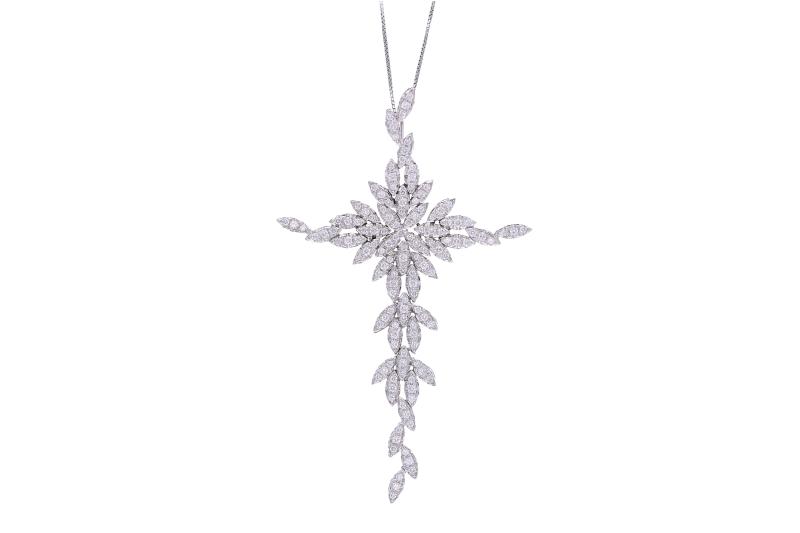 Collana con ciondolo con diamanti, realizzati in oro bianco 750, diamanti taglio brillante, ct 2 totali circa, colore H-J, purezza VS-SI, lunghezza 45 cm, imperfezioni