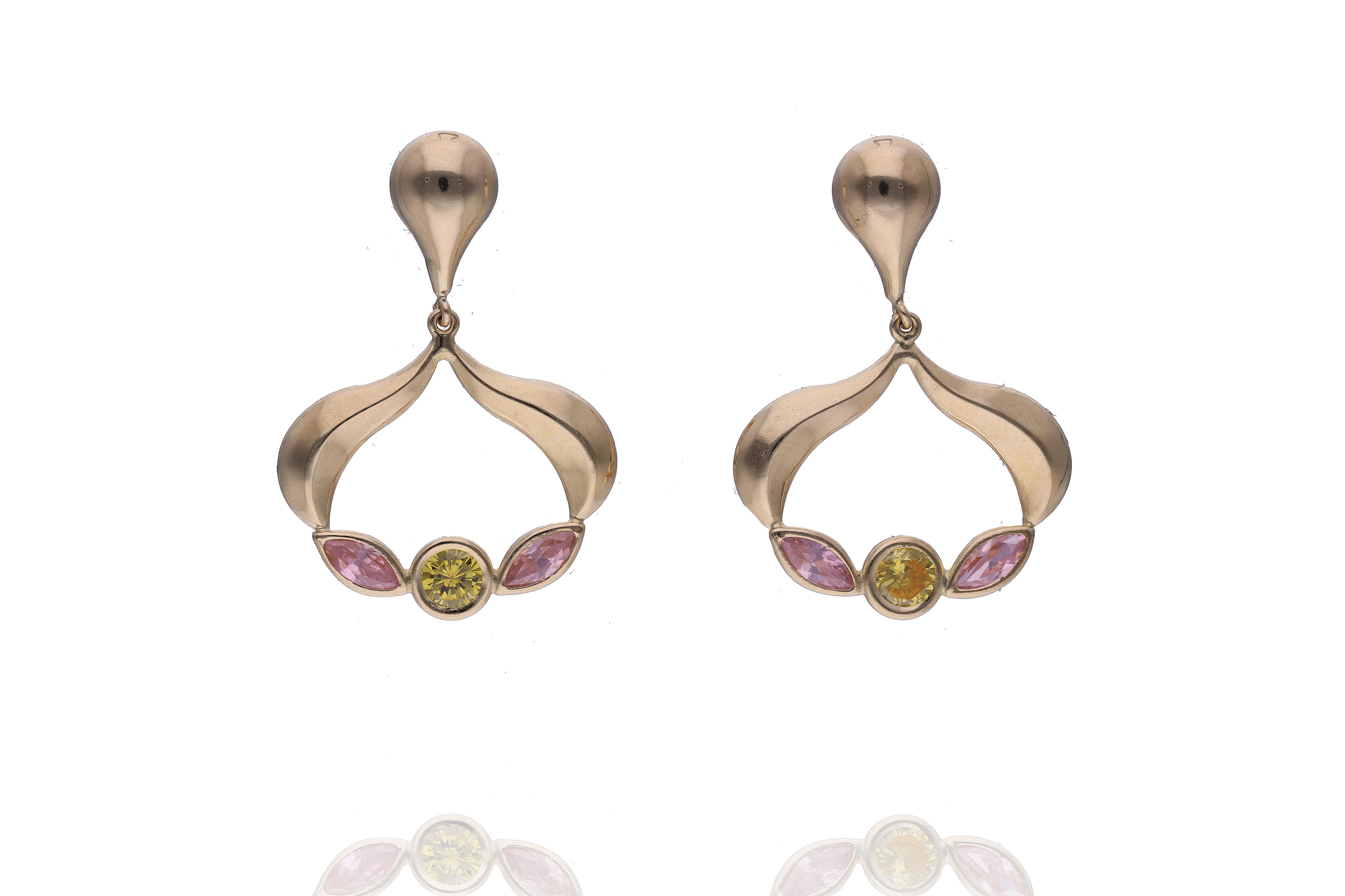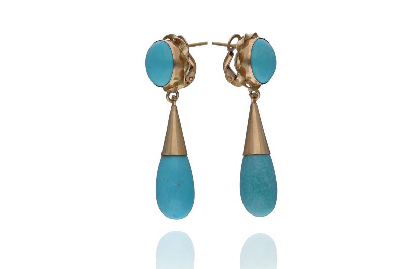 Paio di orecchini con pietre, realizzati in oro giallo 750, chiusura con perni e fermi, imperfezioni